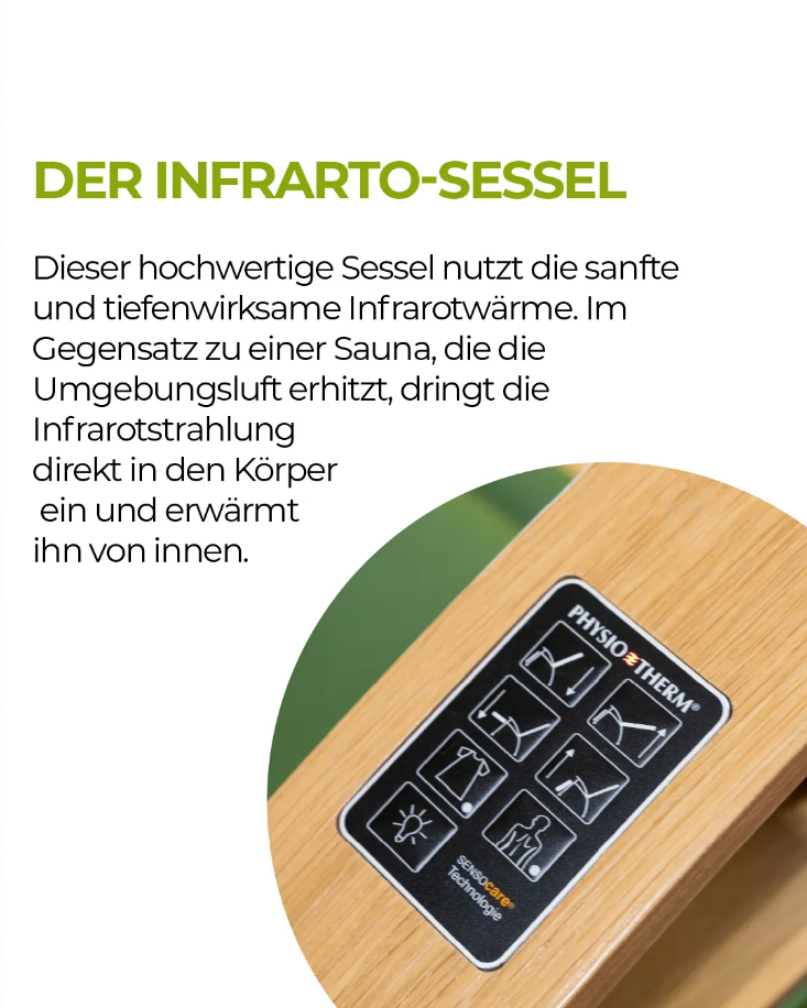 Mit unseren hochwertige Sesseln von Physio Term können unsere HeimbewohnerInnen die sanfte und tiefenwirksame der Infrarotwärme nützen.